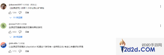 有玩家留言表示:“在这个视频的结尾播放《血源》真的很有意义”“‘关于坚持’——这段《血源》的片段有双重含义,他们知道我们一直在请求(新作/重制版)”“说‘关于坚持’这句话感觉像是在针对社区的暗示”