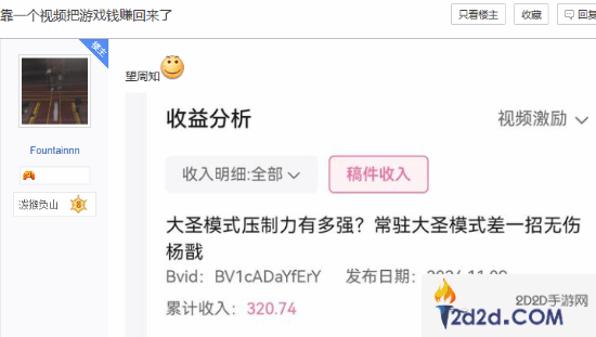 前不久在黑神话吧,UP主@fountainnnn 分享了自己靠一个《黑神话》“无伤”视频刚好把游戏赚回来的经历。
