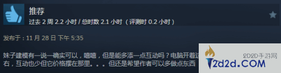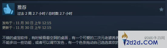 给出好评的玩家们表示,老婆的建模确实可爱又养眼,让冰冷的桌面更有活力了,配合游戏名还可以NTR一下好友,价格也算合理。希望未来能多出一些好玩的功能,现在的内容确实有点少。