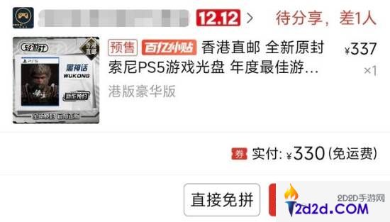 《黑神话:悟空》PS5实体光盘将于2025年1月16日在中国香港、中国澳门、中国台湾、韩国、东南亚等地区发售。由于暂时没有国行版的消息,因此国内玩家大多会选择购买港版。有网友分享,在国内某电商平台借由百亿补贴和优惠券,最终只花330元就买到了《黑神话》PS5港版盘,算是捡了个漏。