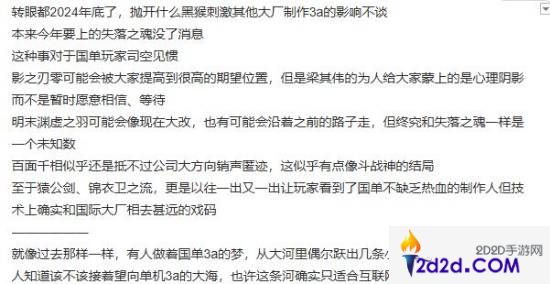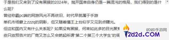 玩家想象没有《黑神话:悟空》的国产3A单机游戏业界情况