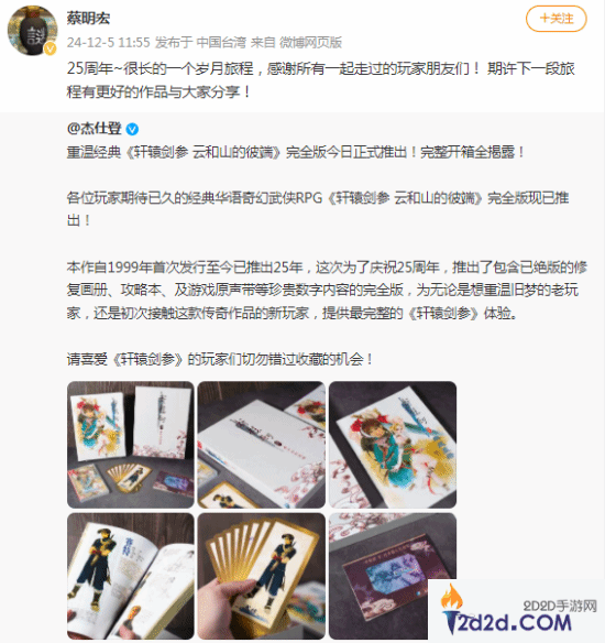 “轩辕剑之父”蔡明宏转发微博表达了怀念之情:“25周年~很长的一个岁月旅程,感谢所有一起走过的玩家朋友们!期许下一段旅程有更好的作品与大家分享!”