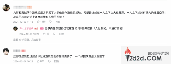在评论区,许多网友纷纷对本作的实机表现给予高度评价。一位玩家表示:“刚刚看完直播PVP实机,我敢说,只要达到这个水平,就是独一档,同级别的火影都打不过,已经达到S级别水准,绝对优秀水平,等初测完海外测试,让老外也看看魔方的水平。”另一位玩家则表示:“火影和海贼两个游戏给魔方积累了太多做动作游戏的经验,希望最终能在《异人之下》上大放异彩,战斗表现和剧情人物的发掘都有巨大的发展空间。”