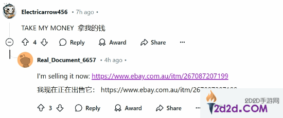 值得一提的是,的确有另一位ID名为“Real_Document_6657”的账号分享了自己的ebay链接,在出售这款《黑神话:悟空》手办。或许该账号为CatTwoYes的另一个账号。
