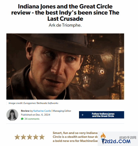 外媒Eurogamer更是给出满分好评(5/5),其评语写道:“《夺宝奇兵:古老之圈》聪明、有趣且充满《夺宝奇兵》精神,本作是一部潜行动作的精彩力作,标志着MachineGames(开发商)的全新时代。”
