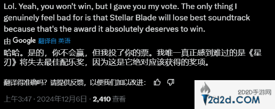 就算如此,粉丝们还是表示会支持《剑星》获奖:“哈哈。是的,你不会赢,但我投了你的票!”