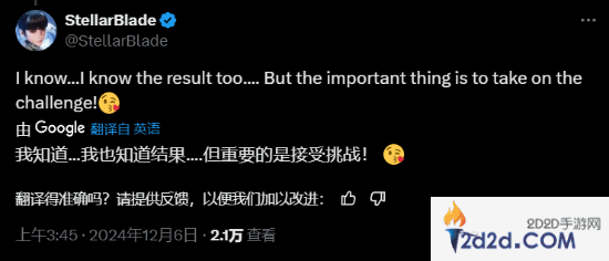 之后《剑星》官方在评论区补充道:“我知道...我也知道结果....但重要的是接受挑战!”