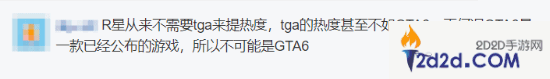 不过也有网友表示,R星不需要tga来提热度,更何况GTA6是一款已经公布的游戏,所以不可能是《GTA6》。
