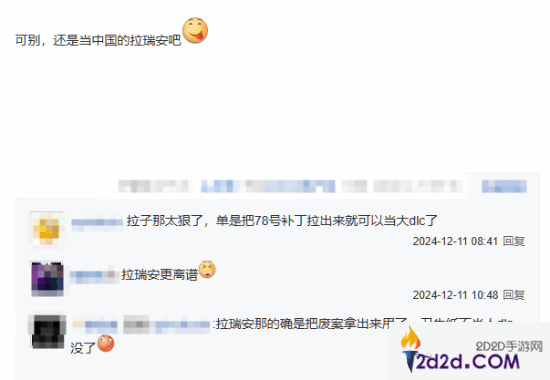 此外还有“贪心”的玩家不满足,表示与其当“波兰蠢驴”不如成为“中国的拉瑞安”吧!不停地更新“X号补丁”。