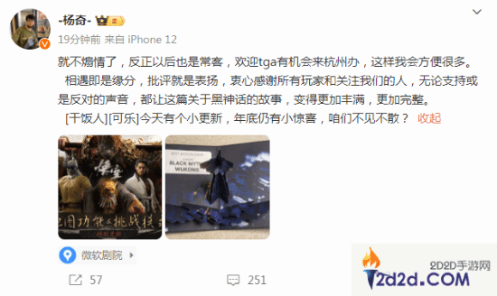《黑神话:悟空》杨奇称以后会是TGA常客 玩家称赞:就得狂!