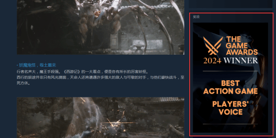值得一提的是,虽然《黑神话》没能获得以媒体投票为主的“年度游戏大奖”,但它获得了玩家投票占100%的“玩家之声”奖项。而在另一方面,《宇宙机器人》则在“玩家之声”首轮“30进10”中早早被淘汰。