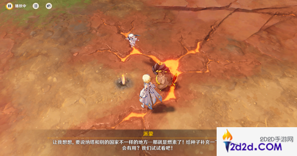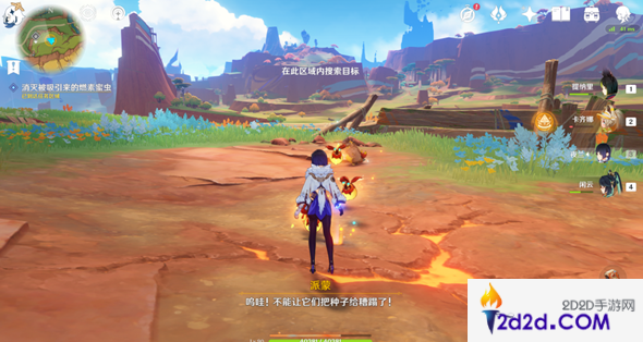 1、玩家在触发待种子萌出新芽任务后,前往任务地点,玩家的岩龙兽会开始挖掘。